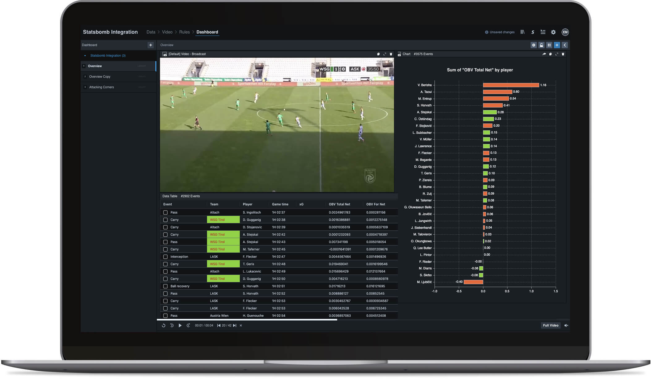 Statsbomb data and Wyscout video are synced automatically