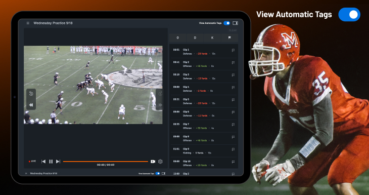 • AI auto-tagging → coming soon, with in-game automatic offense/defense/special teams clips.